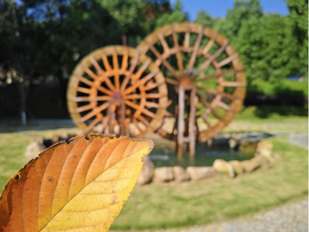 黃葉翩翩舞,水車(chē)緩緩轉(zhuǎn)