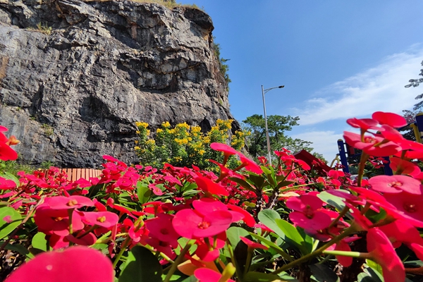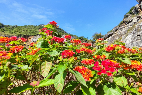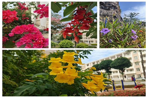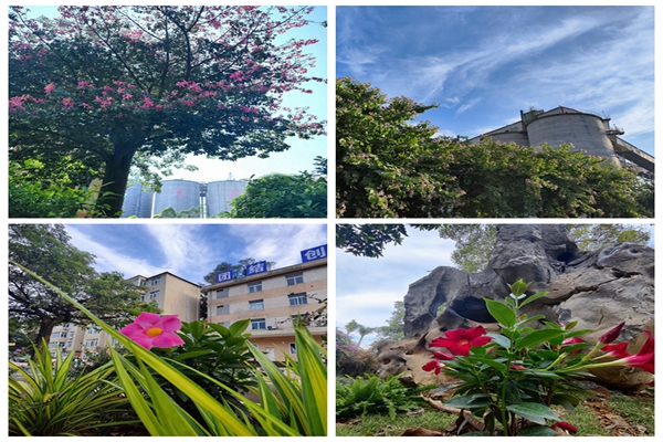 廠區(qū)里,黃的、紅的、粉的、紫的、橙的、白的花兒從一叢一叢的綠色中鉆出來,如一個(gè)一個(gè)精美的調(diào)色盤鑲嵌在隆安海螺的秋色大地上。引得路過的職工都禁不住誘惑駐足觀賞、留影。