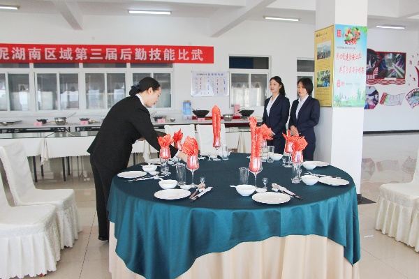 此次區(qū)域后勤技能比武分廚藝和宴會(huì)擺臺(tái)兩個(gè)項(xiàng)目。廚藝技能比武采用特定菜式和自選菜式兩種方式進(jìn)行比拼。在特定菜式中主要考察廚師對(duì)日常菜式的烹飪水平;自選菜式可任意發(fā)揮,著重考驗(yàn)綜合烹飪技能及現(xiàn)場(chǎng)靈活應(yīng)變能力?,F(xiàn)場(chǎng)評(píng)委根據(jù)菜品的味感、質(zhì)感、觀感和現(xiàn)場(chǎng)操作的熟練程度進(jìn)行綜合評(píng)比打分。宴會(huì)擺臺(tái)比武根據(jù)操作時(shí)間對(duì)桌椅位置精準(zhǔn)調(diào)整以及桌布、餐具、酒杯等桌面物品的擺放規(guī)范性、美觀性進(jìn)行綜合評(píng)分。