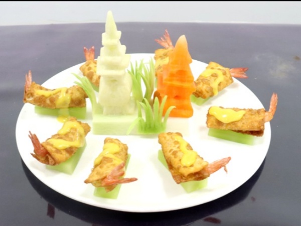 主要食材:蝦、餛飩皮、蜂蜜芥末