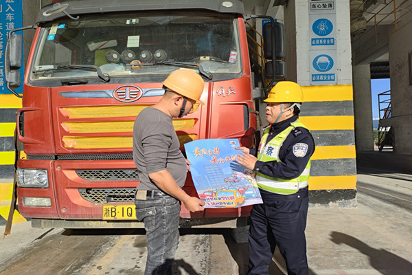 交通講座后,西周交警中隊一行下沉到一線,為駕駛員發(fā)放安全宣傳冊,為車輛貼反光貼片,耐心的和駕駛員談心談話,勸導(dǎo)他們路上一定要遵守交通法規(guī),禁止酒駕醉駕、禁止疲勞駕駛、禁止開車接打電話,并為參加交通講座的駕駛員發(fā)放暖心慰問品,為現(xiàn)場等裝水泥的車輛進行安全檢查等一系列的暖心活動。