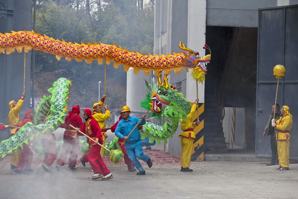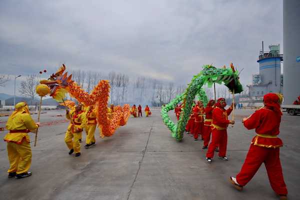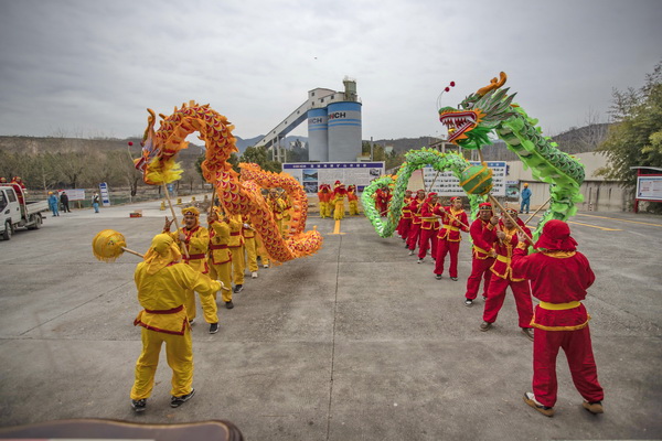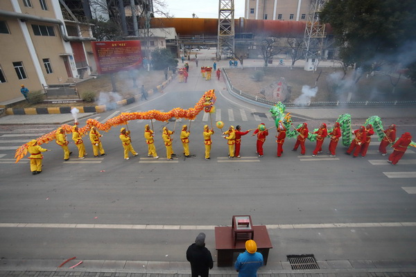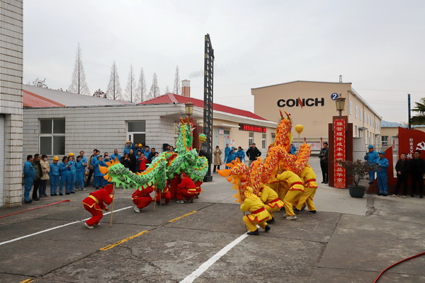 13時18分,龍獅隊回到寧國水泥廠,從海螺山下的礦山、從日產(chǎn)5000噸生產(chǎn)線,舞到海螺“母親窯”、舞到了人才培養(yǎng)基地寧國培訓中心……所到之處,廣大員工精神振奮,滿懷一份感恩之情,表示要進一步凝心聚力、開拓進取,把干勁和熱情發(fā)揮到各項工作中去,搶抓機遇共謀寧國工廠新發(fā)展。表演過程中,干部員工積極參與到舞龍舞獅活動的表演中,共同歡度元宵佳節(jié)。期間,龍獅隊一行還前往在寧企業(yè)海螺環(huán)保和海創(chuàng)綠能進行慰問表演,給廣大員工送去節(jié)日的祝福。