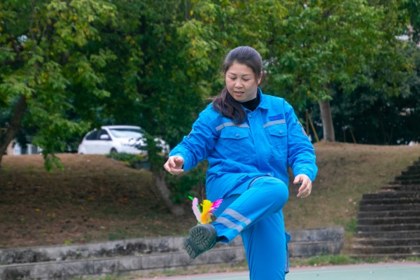 下午的戶外賽場掀起陣陣熱浪。跳繩區(qū)化身“神仙打架”現(xiàn)場:辦公室的“旋風(fēng)小子”以1分鐘215次刷新紀(jì)錄,拉拉隊(duì)自發(fā)組成人墻擋風(fēng)助威;踢毽子擂臺賽更上演“毽”拔弩張的精彩對決,彩色羽毛毽在空中劃出優(yōu)美弧線,80后生產(chǎn)處阿姐憑借“雙飛燕”絕技逆襲奪冠。賽事特別設(shè)置“默契雙人賽”,需兩人共用一根繩一起起跳,跨部門組合的選手們從手忙腳亂到配合無間,現(xiàn)場笑聲與加油聲此起彼伏。