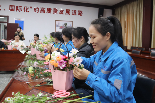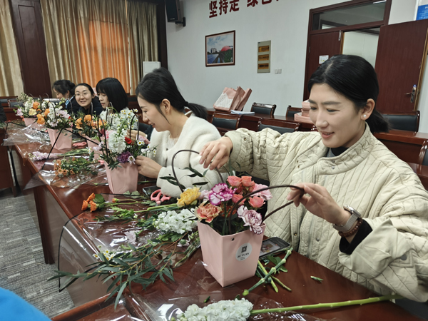 活動(dòng)現(xiàn)場(chǎng),花藝?yán)蠋煆孽r花品種、鮮花搭配和造型設(shè)計(jì)等方面進(jìn)行了詳細(xì)的講解和現(xiàn)場(chǎng)示范。長(zhǎng)桌上鋪滿了各色鮮花與花藝工具,嬌艷的玫瑰、靈動(dòng)的洋桔梗、素雅的康乃馨……女職工們興致勃勃,邊學(xué)邊做,享受著親手創(chuàng)作的樂(lè)趣和插花藝術(shù)帶來(lái)的快樂(lè)。