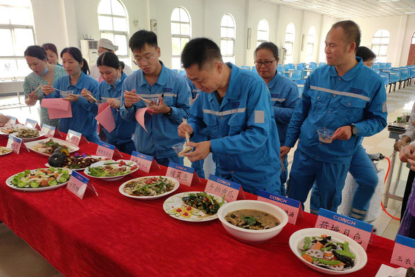 比賽要求每位廚師和每組團(tuán)隊(duì)完成兩葷一素三個(gè)菜肴的制作。評(píng)委們從切配加工、味感、質(zhì)感、觀感四個(gè)方面進(jìn)行嚴(yán)格打分。經(jīng)過激烈角逐,最終評(píng)選結(jié)果出爐:廚師組中,賴候劍榮獲第一名,秦炎獲得第二名,梁鵬取得第三名;員工組方面,水泥分廠隊(duì)斬獲一等獎(jiǎng),礦山分廠隊(duì)獲得二等獎(jiǎng),保全、生產(chǎn)、質(zhì)控聯(lián)隊(duì)榮獲三等獎(jiǎng)。這場廚藝大賽,不僅是一場美食的較量,更是團(tuán)隊(duì)協(xié)作精神的生動(dòng)體現(xiàn)。