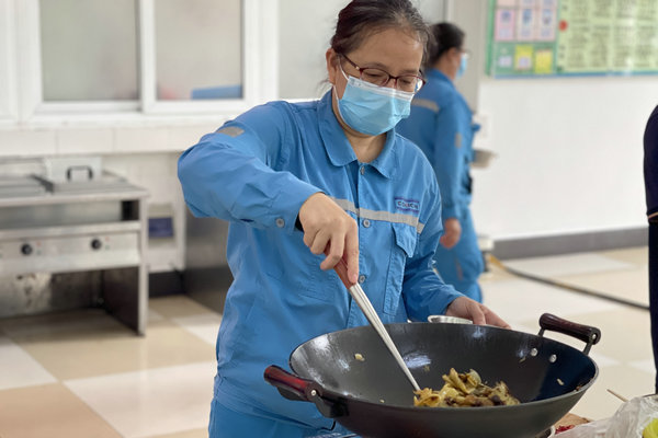 與此同時(shí),來自各部門的員工隊(duì)伍也迅速“接棒”。團(tuán)隊(duì)成員分工明確、配合默契——有人刀工利落嫻熟;有人全神貫注調(diào)味烹飪,讓酸菜魚的鮮香、三生三世連緣湯的醇厚在鍋中慢慢綻放;還有人化身擺盤高手,將鳳凰展彩堂、財(cái)源滾滾來等菜品精心裝點(diǎn)。不一會(huì)兒,食堂里便升騰起裊裊煙火氣,混合著糖醋、麻辣、鮮香等多重香味,將比賽氛圍推向高潮。