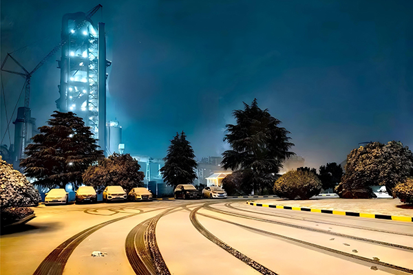 雪花紛紛揚(yáng)揚(yáng)地飄落,頃刻間化作了一個(gè)銀裝素裹的世界。雪花覆蓋在設(shè)備和水泥庫上,仿佛為它們穿上了一件厚厚的白色棉襖。