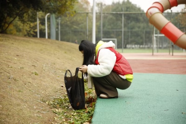 公園里,彎腰撿起文明