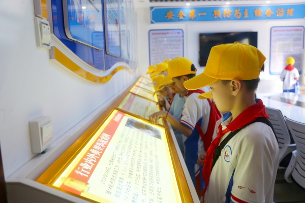 泛滿藍(lán)色燈光的中控室內(nèi),科技感拉滿,孩子們被眼前景象所震撼,數(shù)十塊電子屏閃爍著數(shù)據(jù)和圖表,仿佛是工業(yè)“大腦”;遍布精密儀器設(shè)備的實(shí)驗(yàn)室內(nèi),孩子們圍觀著機(jī)械臂精準(zhǔn)抓取樣品的操作,仿佛置身魔術(shù)表演空間,“這機(jī)械手臂可以幫我批改作業(yè)嗎?”突然一句天真無邪的話讓整個場景變得趣味橫生!