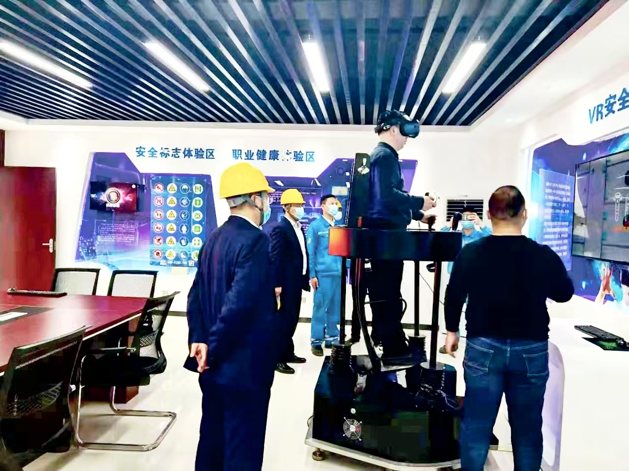 文化長廊隔壁,是充滿科技感的安全警示教育室,VR體驗(yàn)、急救實(shí)操等設(shè)施一應(yīng)俱全。剛?cè)肼毜膯T工小林戴著眼鏡體驗(yàn)粉塵爆炸場(chǎng)景:當(dāng)虛擬空間中粉塵濃度飆升、警示燈爆閃的瞬間,座椅突然劇烈震動(dòng),仿佛身臨其境?!疤鸷沉耍嚷犑沃v座都管用?!闭卵坨R的他仍心有余悸,“以后每次進(jìn)入粉塵區(qū)域,都會(huì)自覺檢查防塵口罩密封度?!毙聠T工需在此完成24小時(shí)以上的安全培訓(xùn)方可上崗。