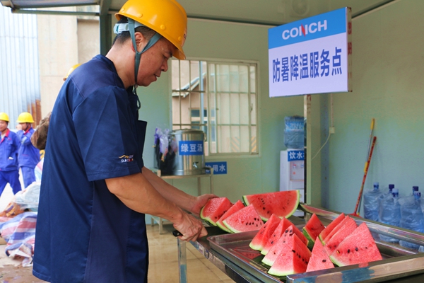 連日來,持續(xù)高溫天氣席卷廣西,多地氣溫突破35℃,給堅(jiān)守在生產(chǎn)一線的員工帶來嚴(yán)峻“烤”驗(yàn)。為切實(shí)做好防暑降溫工作,保障員工健康安全,確保夏季生產(chǎn)平穩(wěn)有序,7月8日,興安海螺公司領(lǐng)導(dǎo)班子帶領(lǐng)工會成員深入現(xiàn)場,開展“夏季送清涼”慰問活動,為奮戰(zhàn)在高溫崗位員工送去清涼物資與暖心關(guān)懷。