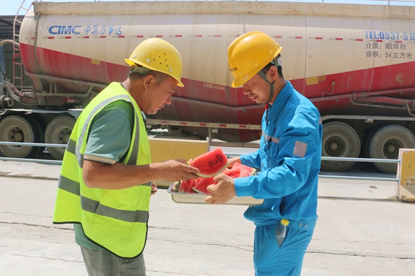 慰問組先后前往窯中廣場、礦山爆破區(qū)、水泥發(fā)運(yùn)等高溫作業(yè)點(diǎn),將精心準(zhǔn)備的鹽汽水、綠豆湯、西瓜等防暑降溫物資送到員工手中,確保一線員工在高溫環(huán)境下能夠及時(shí)補(bǔ)充水分、預(yù)防中暑。期間公司安全環(huán)保處還現(xiàn)場開展了高溫作業(yè)安全培訓(xùn)、夏季中暑應(yīng)急演練,重點(diǎn)強(qiáng)調(diào)“避開午間高溫時(shí)段”“輪換作業(yè)”“穿戴防護(hù)裝備”等事項(xiàng),設(shè)備保全處對生產(chǎn)現(xiàn)場的所有空調(diào)、風(fēng)扇、通風(fēng)設(shè)備進(jìn)行全面檢修,確保降溫設(shè)施正常運(yùn)行。辦公室廣泛聽取一線員工對防暑降溫工作的建議,進(jìn)一步優(yōu)化高溫保障措施,切實(shí)保障員工夏季作業(yè)安全。