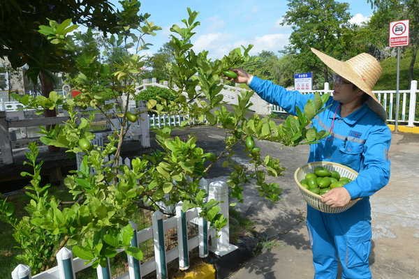 “剛從崗位下來喝上一口,又甜又解渴!”接過冰涼飲品的一線員工,臉上漾開滿足的笑容。公司豐收的水果除了制作特色清涼飲品,還供應(yīng)職工食堂,為員工果盤增添新鮮品類。從前期豐收的荔枝、芒果、西瓜,到如今持續(xù)供應(yīng)的龍眼、檸檬,再到長勢喜人的菠蘿蜜、香蕉、楊桃、石榴、釋迦……源源不斷的“廠區(qū)鮮果”讓員工們時刻感受到生態(tài)綠化帶來的實惠。