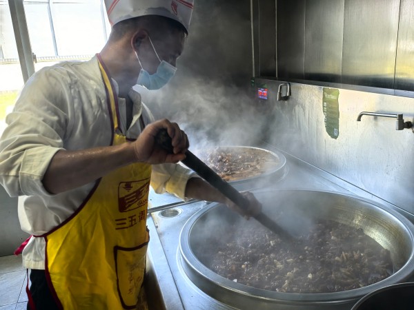 “現(xiàn)場的同事們干活很辛苦,看到他們吃完飯后勁頭十足,我們再熱也值得!”主廚劉師傅擦著汗笑道。