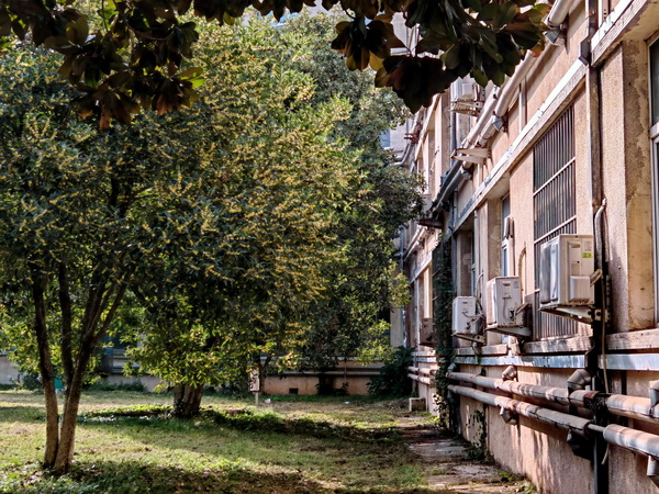 在廠文化宮前,在莊嚴的廠大門入口,尤其是在辦公樓后方,三株格外高大茂盛的桂花樹靜靜佇立。它們與工廠同齡,是1978年工廠建設之時便親手栽下的“元老”。近五十年風雨同行,它們從稚嫩的樹苗長成如今的華蓋亭亭,猶如盡職盡責、默默奉獻的老員工,深深扎根于此,見證著工廠的成長與變遷,也用自己的每一次新綠、每一樹繁花,默默裝點著這座現(xiàn)代化工業(yè)基地的四季風景。