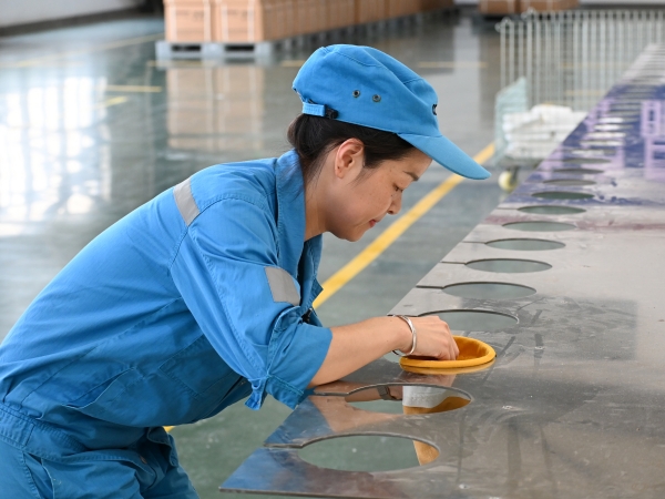 在銅陵環(huán)境的濾袋生產(chǎn)線上,質(zhì)檢員正進行每日的巡檢。她隨手抽檢一條剛生產(chǎn)的半成品,邊測量邊向身旁的新同事解釋道:“你看,從半成品到成品出庫,我們設(shè)了“半成品過程檢+成品入庫檢+產(chǎn)品發(fā)運檢”三重質(zhì)量防線,我這第一關(guān)最關(guān)鍵。”她指向?qū)崟r更新的數(shù)據(jù)看板,“像幅寬這種關(guān)鍵尺寸,現(xiàn)在控制得越來越準,所以整體的廢品率才能穩(wěn)定控制在5.58%,好質(zhì)量才是咱們最大的底氣”。