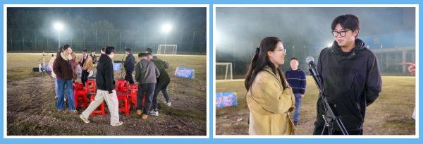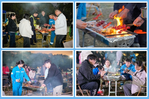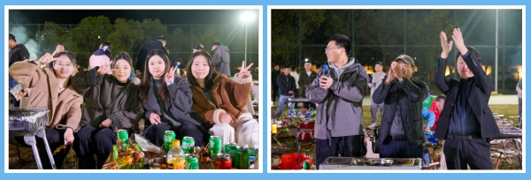 你看這邊的燒烤區(qū),雖伴著冬季傍晚的微涼,卻處處洋溢著火熱的氣息。員工們自發(fā)組成燒烤小隊,分工協(xié)作、默契配合,有人熟練翻轉,精心控制火候讓食材能夠達到最佳風味;有人熱情分發(fā)調(diào)料和飲品,不時揮舞著熒光棒配合樂隊的演出節(jié)奏。平時忙于各自崗位的員工都在此刻化身為“燒烤大師”,在炊煙裊裊與歡聲笑語中,彼此間的距離迅速拉近,交流也變得自然而融洽。