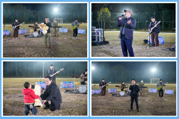 夜幕初垂,活動在激昂的樂隊演奏中拉開序幕。架子鼓、貝斯、鍵盤的旋律迅速點燃了全場熱情,來自水泥分廠的張勇以一首《一生不變》正式開啟整場音樂節(jié)的篇章。隨后,來自不同分廠的多位員工相繼登臺,一展歌喉,首首經(jīng)典曲目演繹得深情動人,臺下掌聲熱烈,大家揮舞的熒光棒匯聚成一片璀璨星海。