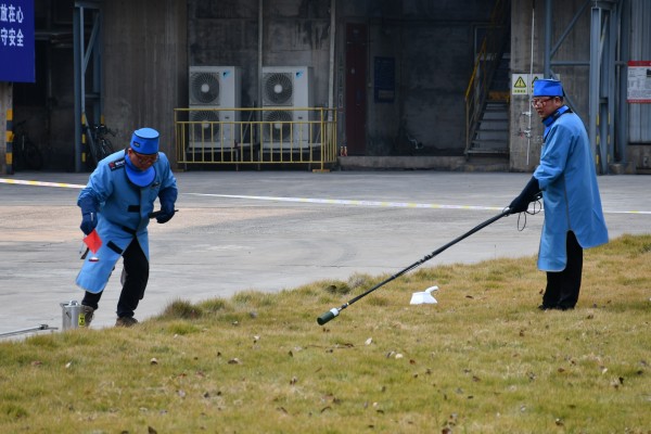 演練模擬益陽海螺公司工作人員對礦山皮帶輸送線礦料分析儀更換下來的1枚核素為锎Cf-252放射源(Ⅳ類源)進(jìn)行轉(zhuǎn)移時(shí),在廠內(nèi)運(yùn)輸途中丟失,可能造成工作人員誤照射。演練模擬情景屬一般輻射事件,益陽市人民政府對此事件啟動(dòng)Ⅳ級應(yīng)急響應(yīng),組織相關(guān)部門和單位開展應(yīng)急處置措施。