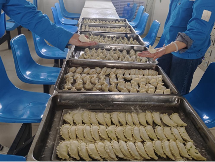 元寶餃、月牙餃、魚餃,還有的帶著創(chuàng)意的花邊,不同地域的員工還展示了各自家鄉(xiāng)的包法,每一種形狀,都承載著一份對家的思念。