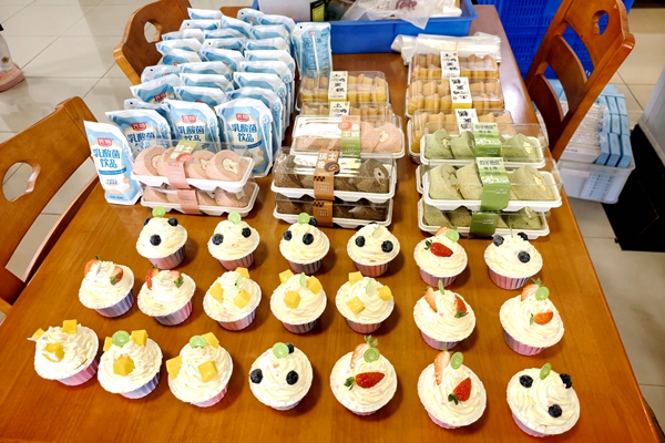 制作間隙,孩子們興奮地品嘗著準(zhǔn)備的小點(diǎn)心,紙杯蛋糕、餅干、瑞士卷、酸奶等琳瑯滿目,歡聲笑語(yǔ)中更添一份童趣與滿足。