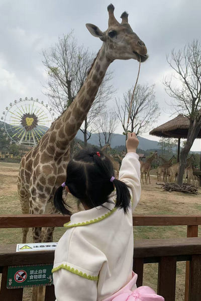 當(dāng)長(zhǎng)頸鹿溫柔地低下頭,用清澈的目光靜靜注視時(shí),時(shí)間仿佛在此刻靜止。大家小心翼翼地與這些可愛的生靈互動(dòng),感受著動(dòng)物帶來的純粹與治愈,人與動(dòng)物之間沒有隔閡,只有最真摯的信任與溫暖。