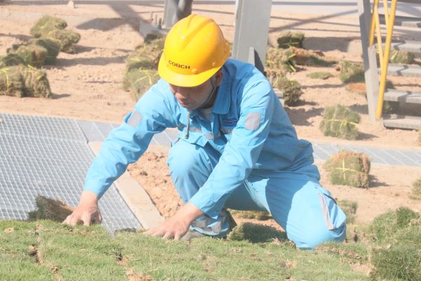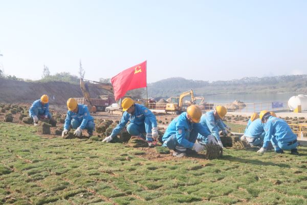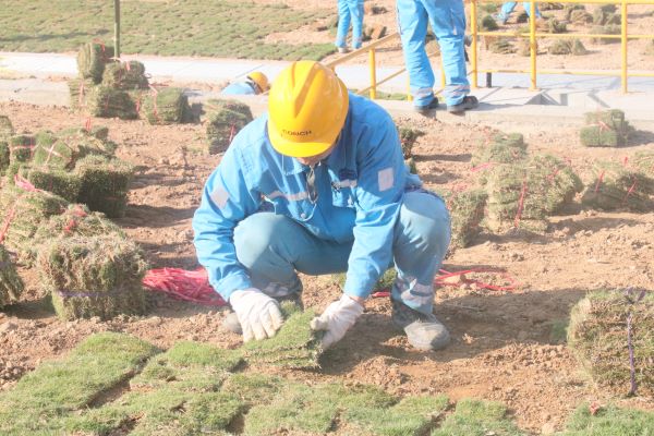 活動現(xiàn)場中,大家有條不紊地進行場地清理,清除碎石,對鋪設區(qū)域進行翻耕,打碎土塊、平整地面,鋪設草皮。在大家的共同努力下,一塊塊草皮緊密銜接,構(gòu)建出一道致密的生態(tài)護坡,讓現(xiàn)場環(huán)境煥然一新,一抹抹綠色映入眼簾,為早春廠區(qū)增添了一抹盎然生機。