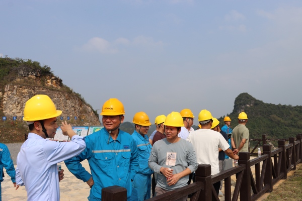 宣講環(huán)節(jié),隆安海螺相關(guān)負(fù)責(zé)人圍繞綠色礦山建設(shè)規(guī)劃、生態(tài)環(huán)境保護(hù)與修復(fù)、安全生產(chǎn)管理等核心板塊,結(jié)合公司礦山建設(shè)實(shí)際案例,全面分享了企業(yè)在踐行綠色發(fā)展理念、打造標(biāo)準(zhǔn)化露天礦山過(guò)程中的思路舉措與成果經(jīng)驗(yàn)。講解中重點(diǎn)介紹了公司堅(jiān)持“邊開(kāi)采、邊修復(fù)”的生態(tài)治理模式,通過(guò)科學(xué)規(guī)劃開(kāi)采布局、實(shí)施階梯式綠色開(kāi)采、推進(jìn)礦山復(fù)綠與生態(tài)重塑,實(shí)現(xiàn)礦產(chǎn)資源開(kāi)發(fā)與生態(tài)環(huán)境保護(hù)協(xié)同發(fā)展。實(shí)地觀摩研學(xué)是本次培訓(xùn)的核心環(huán)節(jié),全體參訓(xùn)學(xué)員走進(jìn)隆安海螺那發(fā)石灰?guī)r礦區(qū),與技術(shù)團(tuán)隊(duì)圍繞資源高效開(kāi)發(fā)模式、資源綜合利用技術(shù)、綠色低碳轉(zhuǎn)型路徑、生態(tài)修復(fù)與環(huán)境治理舉措、技術(shù)創(chuàng)新與規(guī)范管理等關(guān)鍵議題,展開(kāi)多維度、深層次的交流研討。蔥郁的植被覆蓋、規(guī)范的開(kāi)采流程、先進(jìn)的環(huán)保設(shè)施、優(yōu)秀的企業(yè)文化,讓在場(chǎng)學(xué)員直觀見(jiàn)證“礦山變青山”的蝶變歷程,贏得了主辦方與學(xué)員的一致認(rèn)可,紛紛表示深受啟發(fā)、獲益良多,贊譽(yù)為全區(qū)同類(lèi)礦山企業(yè)建設(shè)提供了清晰的思路指引。